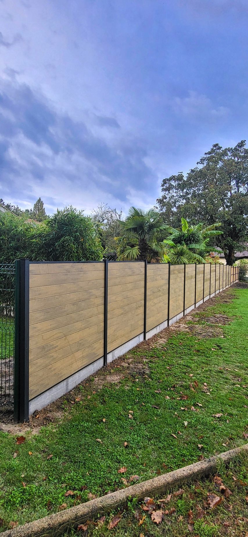 nous réalisons tous types de clôture (composite, grillage rigide, poteaux/plaques béton/bois/alu ect) portail, carport bois/alu mais aussi la création de terrasse en béton ou en bois ainsi que du bardage style Arcachonnais