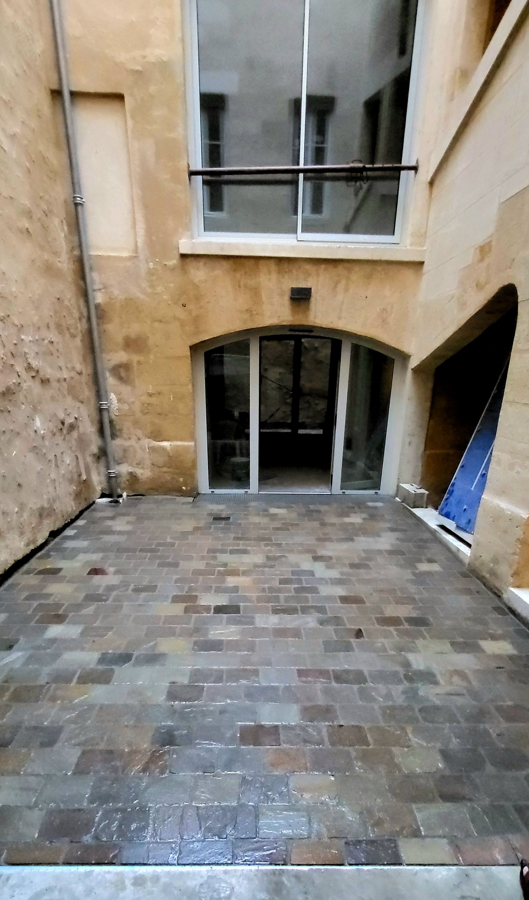 La pose de bordures, pavés, VRD, système de puisard pour la gestion des eaux pluvial.